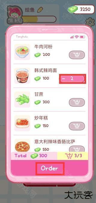 2、在点餐界面选中食物加入购物车,添加完所有物品后点击“Order”;