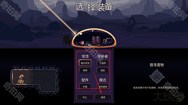 5、选择好创建游戏的穹顶类型、宠物、守护者身份、皮肤以及配件类型、游戏模式即可点击继续创建游戏世界