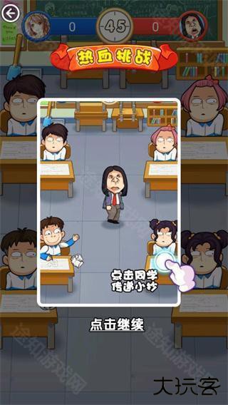 点击同学传递小抄,在避开老师的耳目下,传递成功积分+1,最后成就以积分为准。