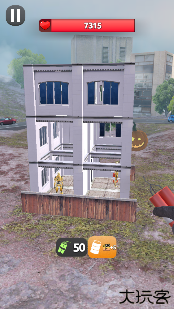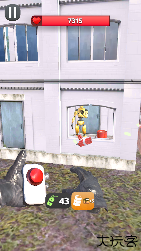 3、安排炸弹后就会出现遥控器,点击即可引爆,随后对建筑造成伤害。