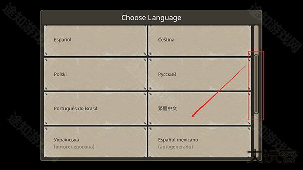 1、初次进入游戏我们需要手动选择语言,下滑找到“繁体中文”字样点击即可切换