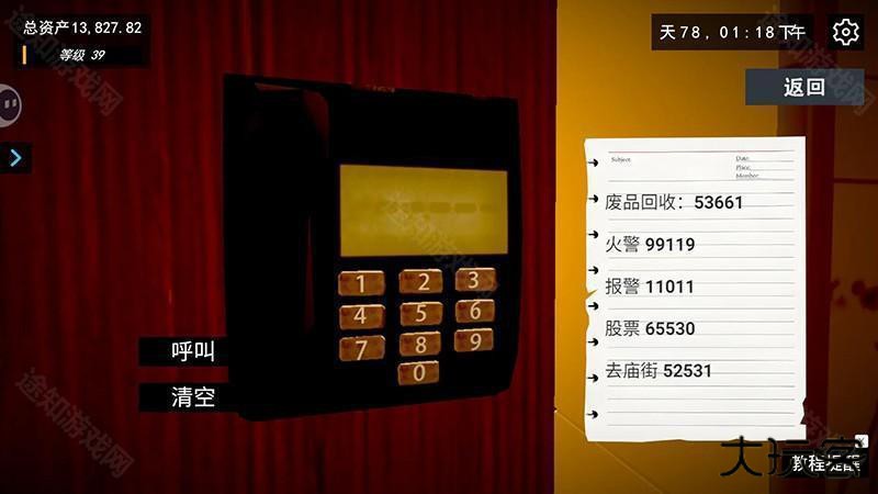 大门,你的右手边有个小电话,点开输入纸上有个回收废品的数字,然后点左边的呼叫就行