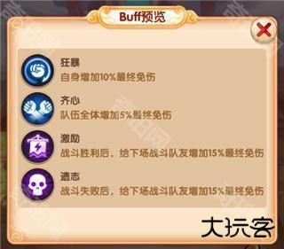 遗置:战斗失败后,给下场战斗队伍增加15%最终免伤