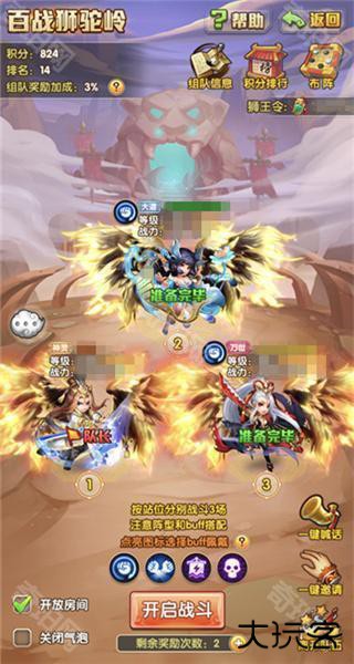 当主角等级达到76级时,开启玩法【百战狮驼岭】。