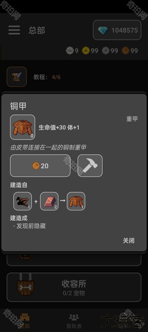 4、领取完战利品后我们可以返回总部来制作铜甲。