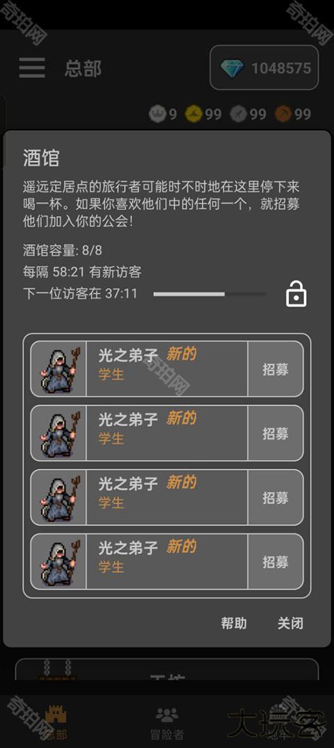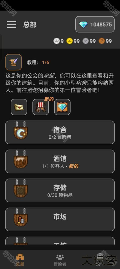 1、进入公会会长游戏后我们需要来到酒馆来招募我们的佣兵。