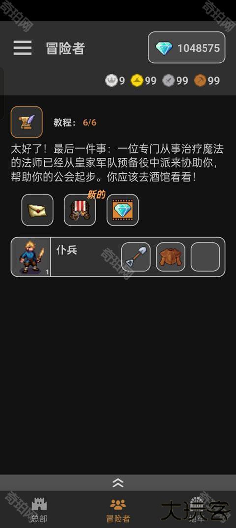 4、这是一个复杂的回合制系统,你可以决定你的团队的组成,装备最好的道具来补充他们的建设,然后让冒险者去做剩下的事情。