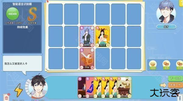 经常刷技能经验,然后选择高难度的工作,普通难度8月份能提前转正。上班加班通用混玩,不用的牌尽快分解,升级其他卡牌,前期常用:准时上下班+、人傻钱少(上班牌),自信(加班牌)+,踏实、能言善辩(通用牌)。
