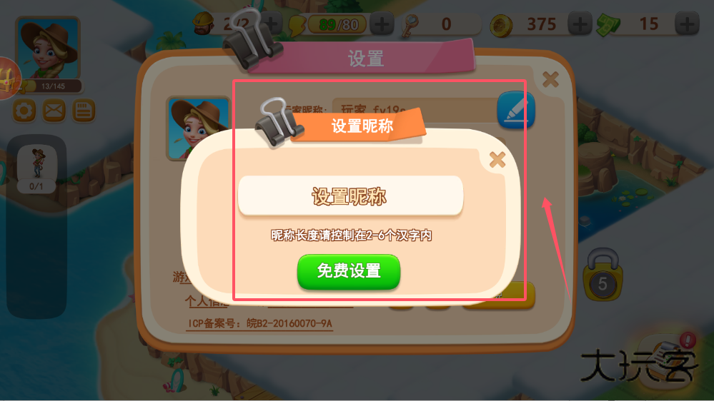 2、点击昵称旁边的编辑按钮,会弹出输入界面,系统会明确提示名称的长度限制,必须在2-6个汉字之间,你可以根据这个要求构思合适的昵称。