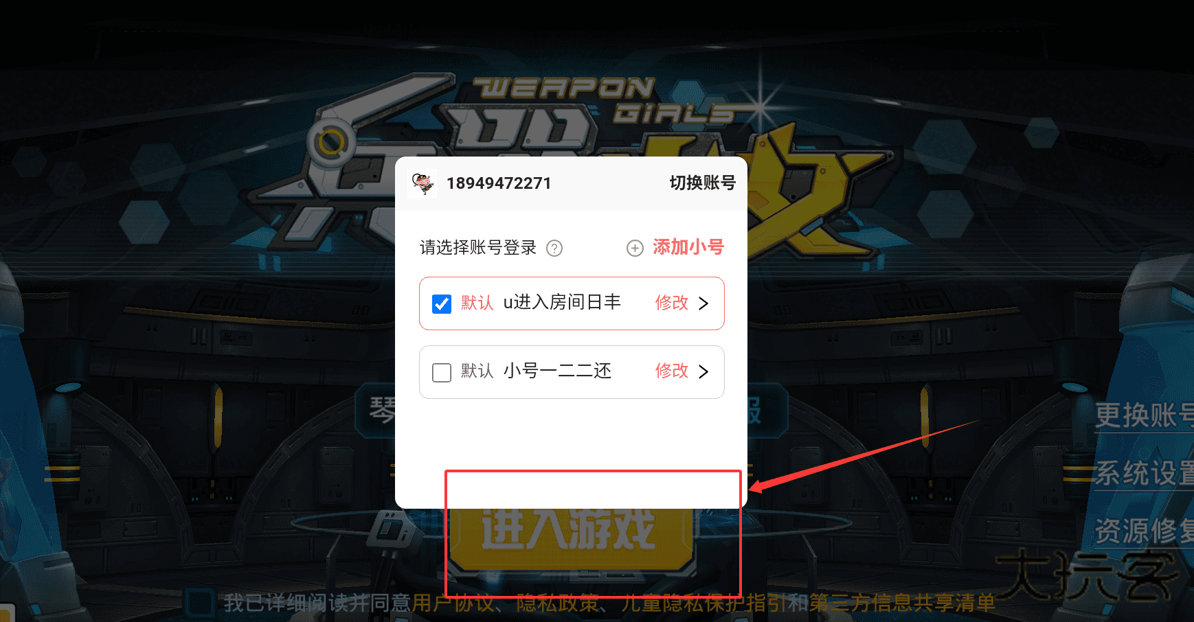 4、完成账号选择或设置后,就可以点击“进入游戏”开始体验了,如果遇到资源问题。