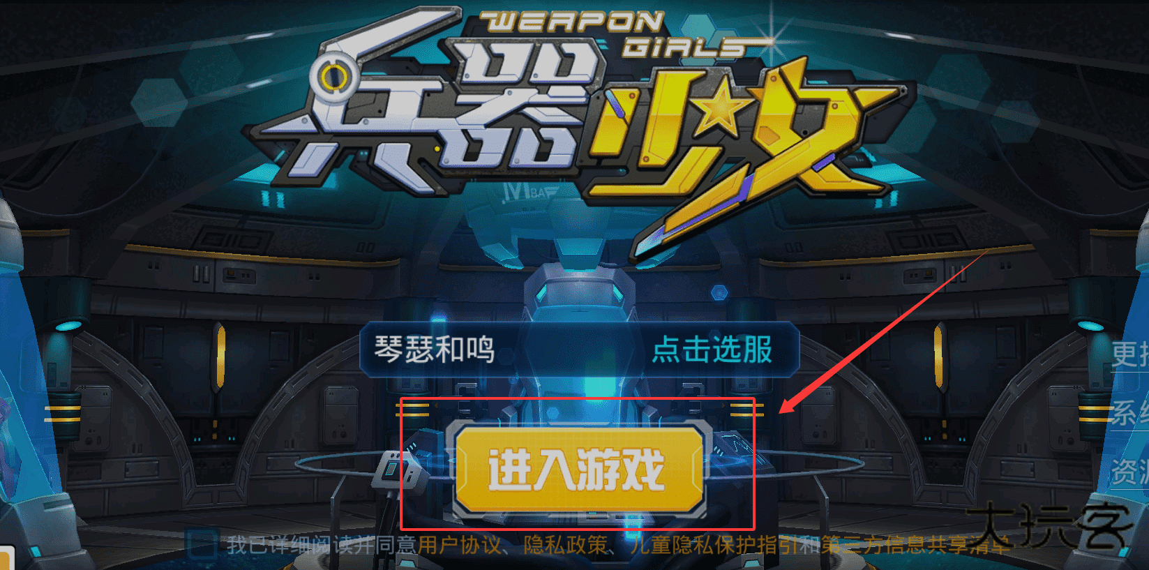 1、首次进入游戏时,首先会看到“点击选服”与“进入游戏”选项,我们需要选择一个服务器。