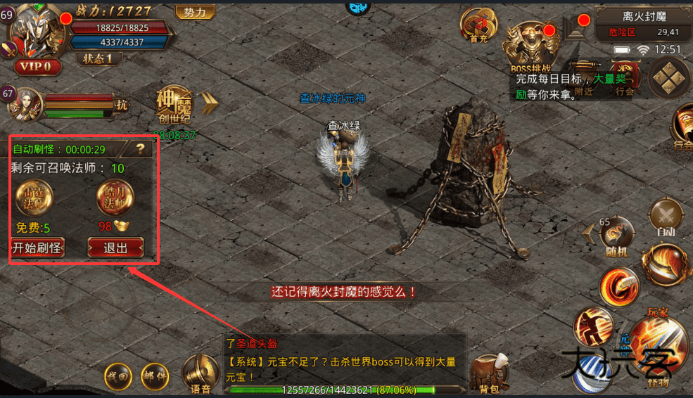 4、参与“离火封魔”等活动时,注意利用免费次数召唤法师协助刷怪,能更有效率地获取奖励。