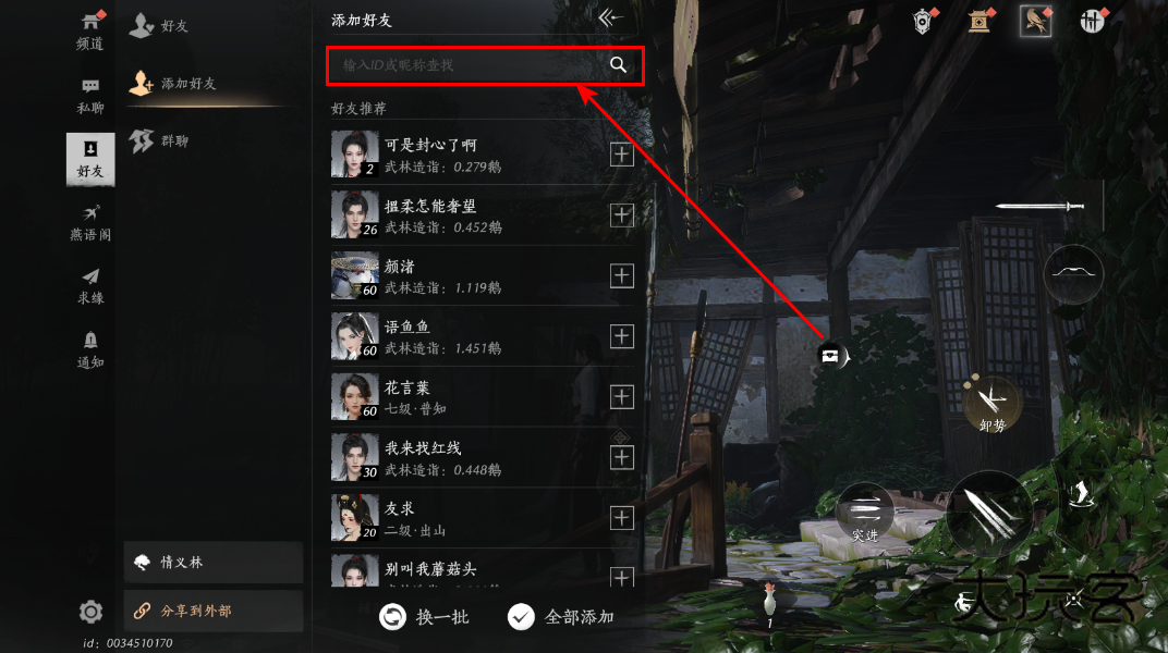 4.如果要搜指定的人,也可以输入id或者昵称。