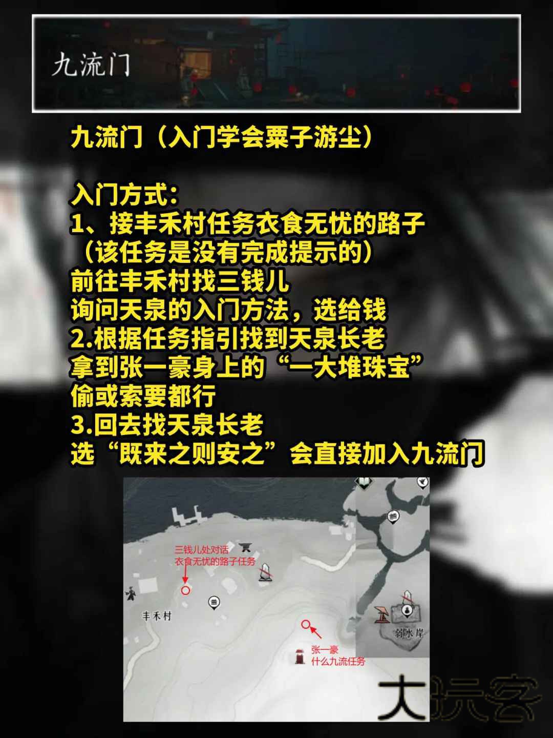 1、接丰禾村任务衣食无忧的路子(该任务是没有完成提示的)前往丰禾村找三钱儿询问天泉的入门方法,选给钱