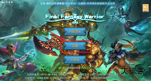 2、验证通过后返回主菜单核对版本号为1.4.9,随后点击开始游戏按钮正式进入程序主界面。