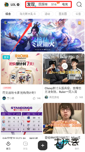 1、首先,打开掌上英雄联盟app主页,点击箭头所指的视频的位置。