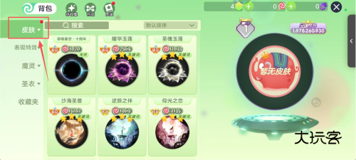1、在背包的皮肤分类下,点击对应皮肤选项,选定该皮肤,可更换角色当前的外观样式。