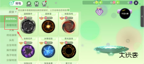 2、切换至魔镜特效分类,点击对应特效选项,选定该特效,可替换角色当前的展示特效。