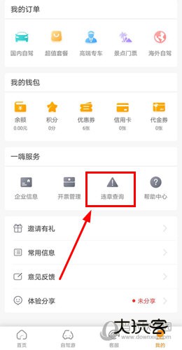 1、同样的,在“我的”个人信息设置界面中选择“违章查询”的功能选项,点击进入即可。