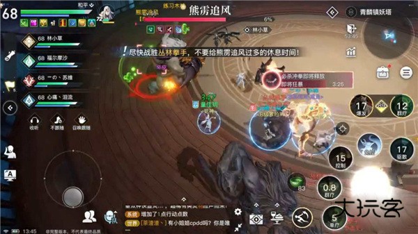 在第0层,系统会随机挑选一名幸运儿回答问题,答对一定数量方可开启青麟挑战。在每一层,冒险家都需要通过战前考验才能开启战斗。比如,对付第一层的元狸酒仙,需要抓住它嗜酒的弱点,开启酒坛子获得战斗增益;对付第二层的熊雳追风,则需要集火攻击场地中的中央木桩,以积累达到秒伤门槛……层数越高难度越大,但每一次战斗,都有可能开启神秘传奇。
