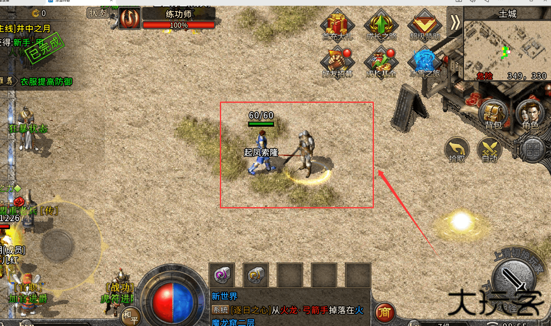 2、开放的世界大地图,野外自由的PK战斗,攻击的手段也是花样百出,为玩家带来了新的热血传奇玩法。