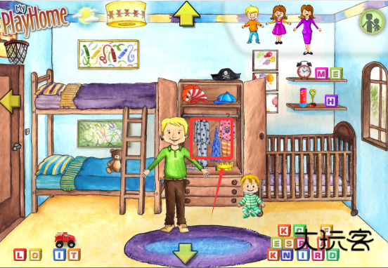 非常有趣的互动游戏,适合1-7岁的儿童玩,游戏可以让小孩把屋子内的人物和东西随意移动,卡通风格和互动有趣的元素,相信令孩子们玩得高兴。