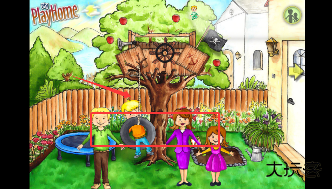 游戏的背景是一所独立房屋,一家五口,爸爸妈妈和三个小孩,用手指滑动画面,可以显示屋内不同角落,有客厅、房间、浴室和厨房,屋内的五位主角和部分的道具都可移动,例如,点选电视机就会出现画面、点击水龙头会有水流出、关灯、打开雪柜倒出饮料,非常有趣。