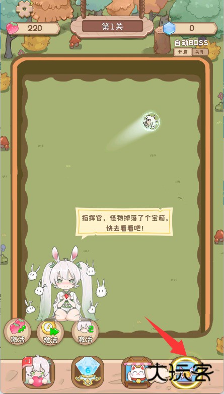 3、击败怪物后,点击场景中出现的“宝箱”图标,将其拾取至背包或直接打开选项界面。