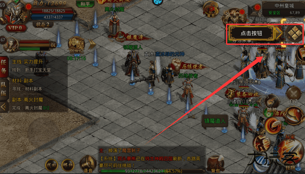 2、在主城注意右上角提示,点击按钮可快速参与活动或任务。