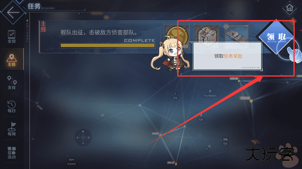 1、完成后记得点击“COMPLETE”确认完成状态,然后直接点击“领取任务奖励”按钮,奖励就到手了,这一步千万别忘了领哦。
