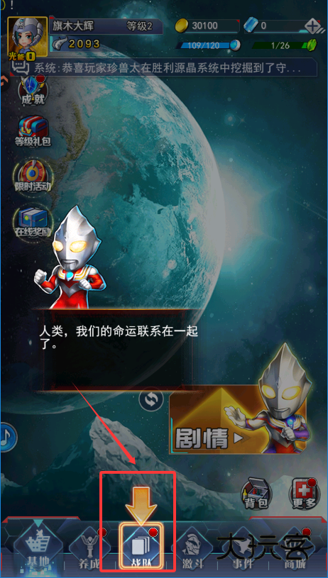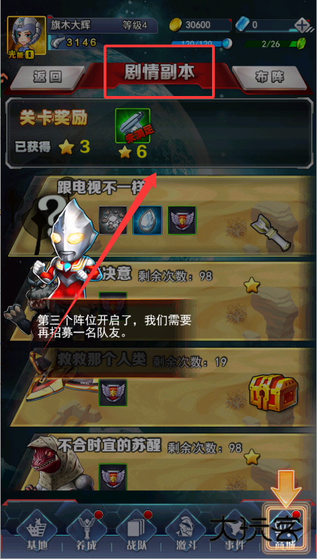 1、进入游戏后优先做主线剧情,就是主界面有“剧情”图标的地方,点进去跟着任务走就能快速升级。升级很重要哦,就像图里从2级升到3级,能解锁更多功能和提高体力上限。