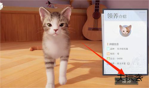 2、遇见心仪的小猫后,只需轻触该猫咪形象就能触发领养流程。