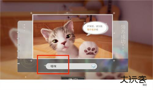 3、接下来为您的爱宠取一个独特的名字,确认后便成功完成领养手续。