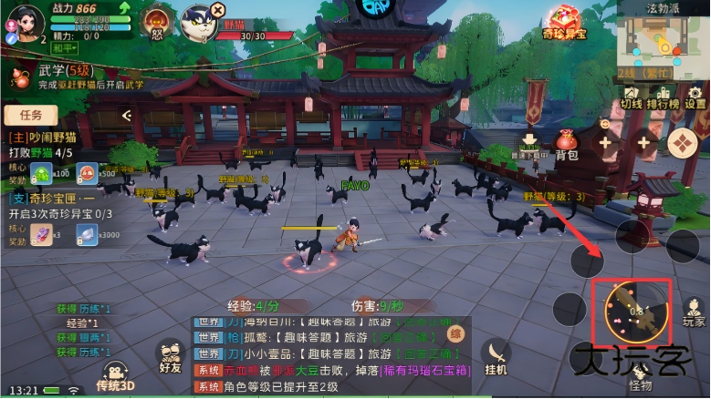 2、初期重点在于推进主线剧情并解锁宠物系统,首只攻击型宠物“雪翼雕”将伴随玩家参与战斗,通过日常活动积累宠物精魄可解锁更多稀有灵兽,同时需合理分配武学与气功点数。