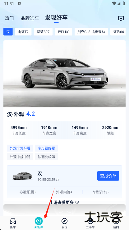 2、“新能源”栏目中,则可以根据品牌销量、续航等方面查找新能源汽车。