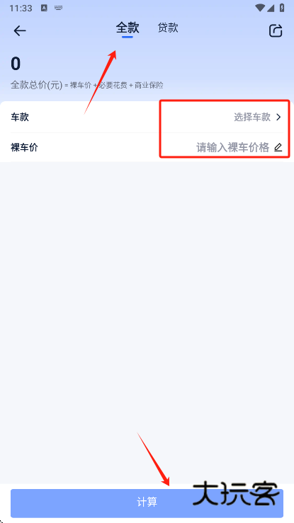 3、选择好车型然后输入相关信息,点击计算即可得出结果