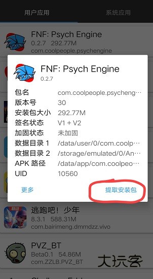 4.再选择需要安装的apk,点击提取安装包