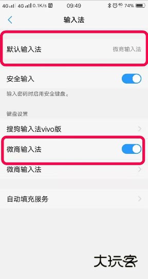 2、接着选择”微商输入法“为默认输入法;