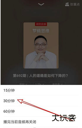 4、选择要定时关闭的时间,比如 30分钟菜单项。