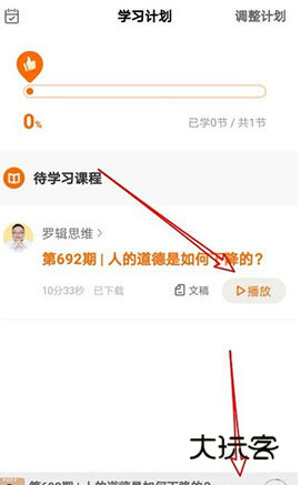 1、打开得到APP,点击底部的“学习计划”选项卡。