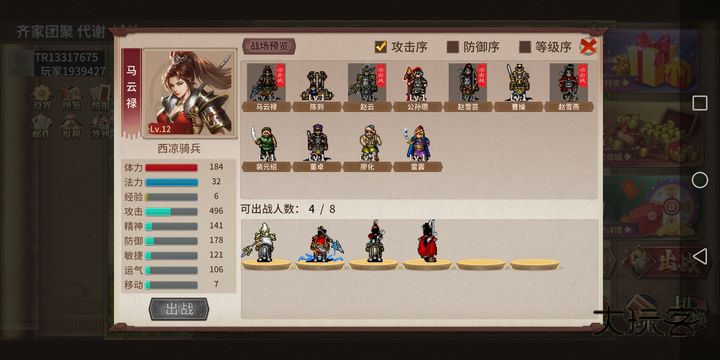 马云禄装备蛇矛,防御队伍次低。开局赵云、马云禄往上冲。赵云必须在赵雪芸出现的时候直接对话,不然很麻烦。马云禄尽量一次杀俩个,攻击不够就随机下皮肤或者买把蛇矛合成一次。