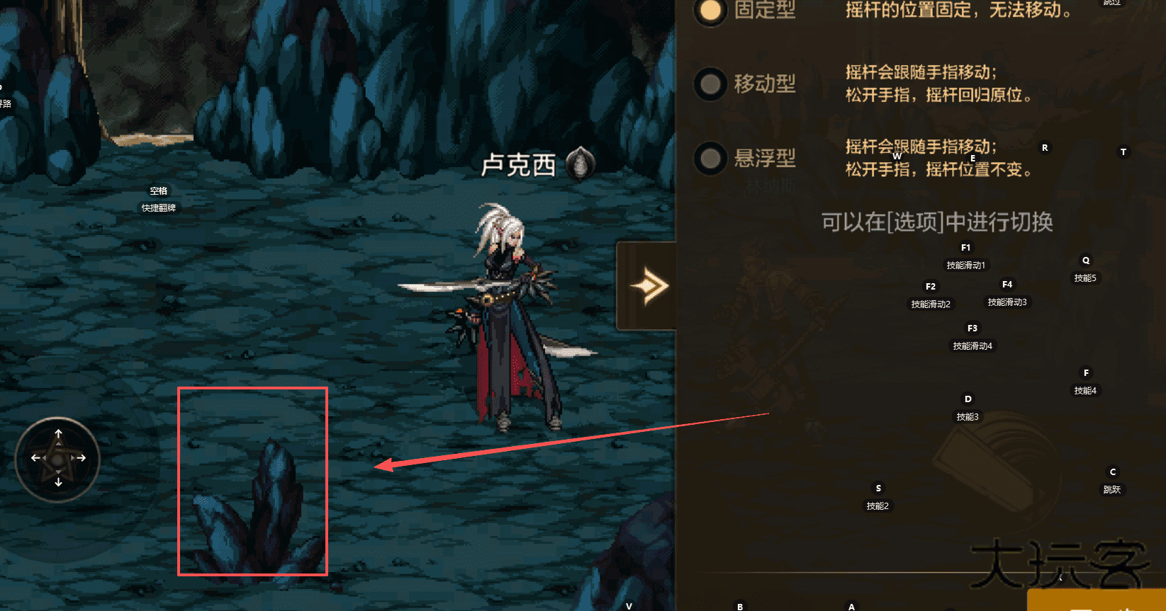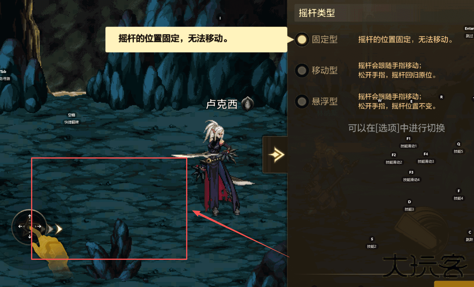 2、固定型摇杆的位置是固定不动的,适合习惯固定操作区域的玩家。