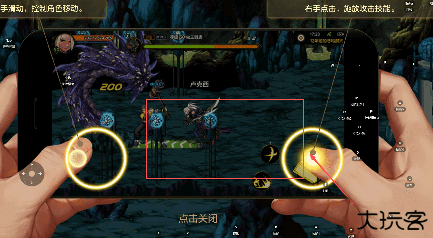 4、注意界面中还有一些标注如 F1、F2 等按钮,它们通常对应着快捷技能或功能。