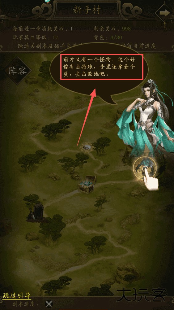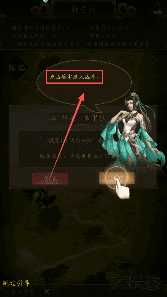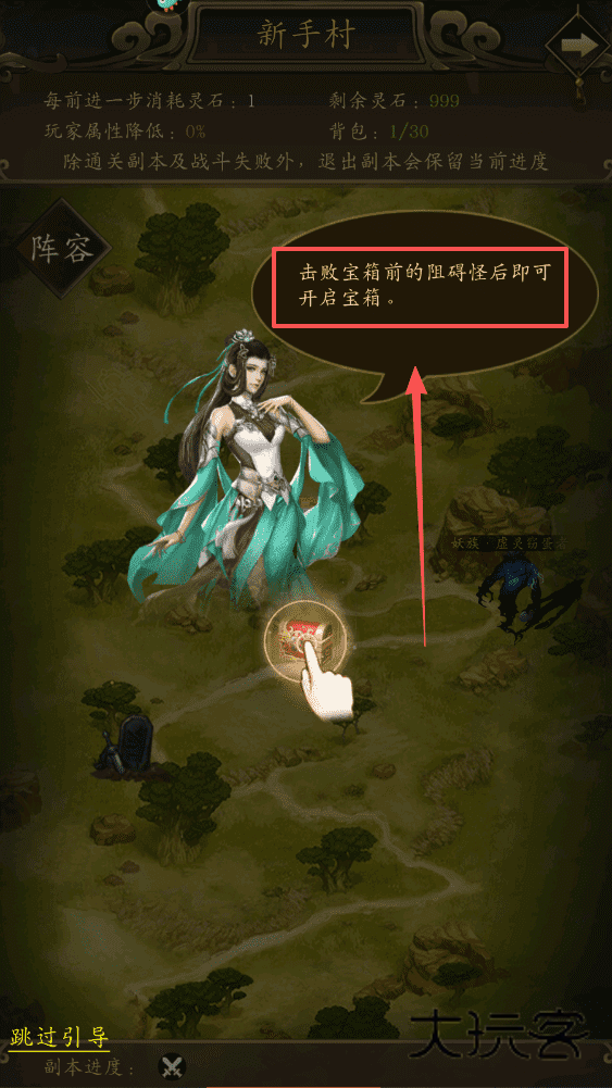 4、想快速体验可点击左下角的跳过引导,退出副本会保留进度,方便下次继续冒险。