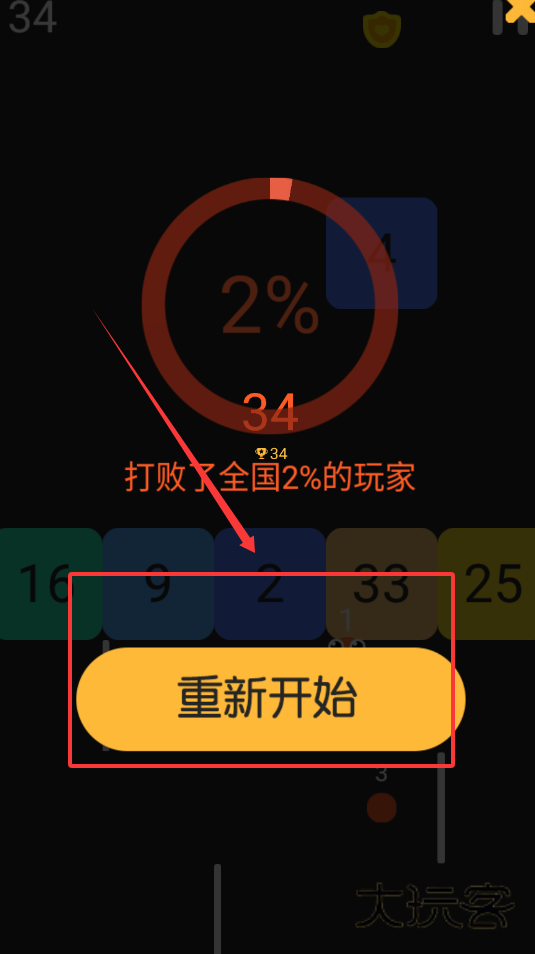 4、游戏结束后会显示你的得分和排名,比如打败了全国百分之几的玩家。