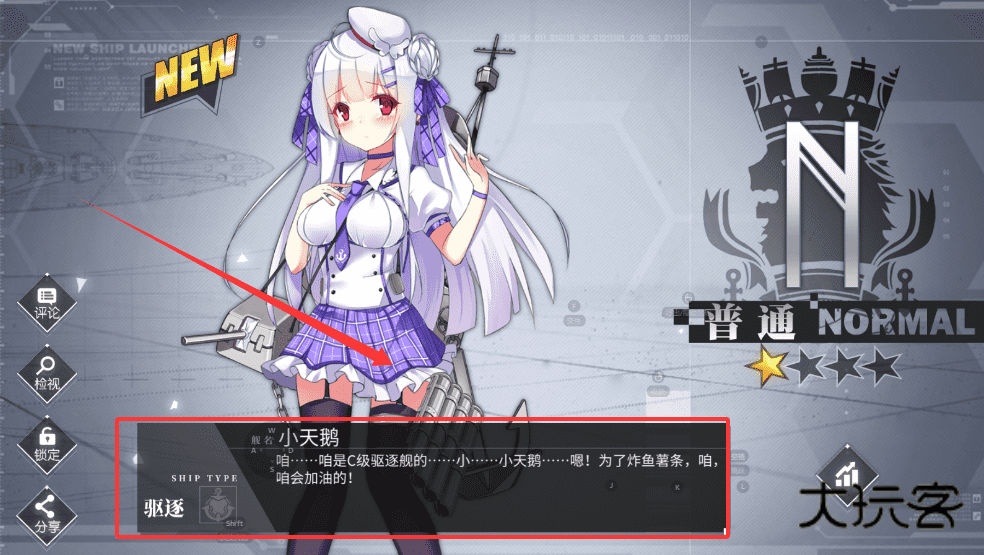 2、像“小天鹅”这类驱逐舰,可以点击“NEW”查看详情,并根据指引选择“冒险”或“普通”模式继续推进进度。
