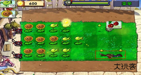 3、当僵尸出现时,种植的攻击型植物会自动发动攻击,注意及时补充受损的植物。