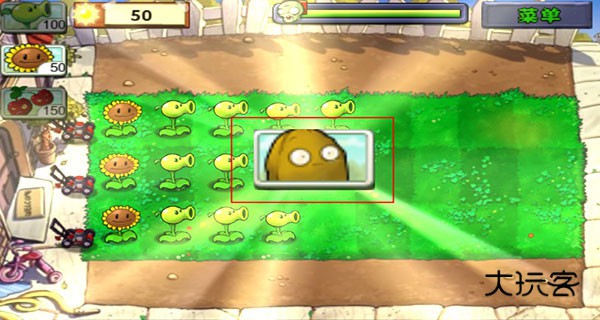 2、在草坪上选择合适的植物进行布置,每种植物需要消耗不同数量的阳光,合理搭配不同功能的植物。