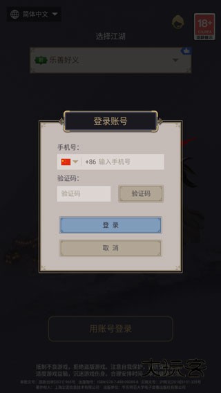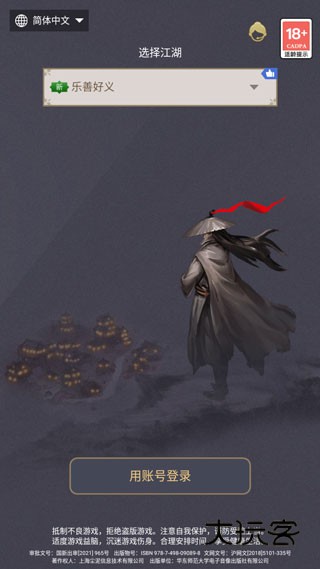 1、打开这就是江湖手游,选择游戏服务器,点击账号登录;