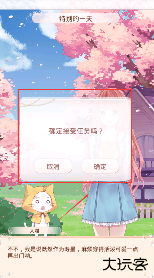 1、阅读任务背景,会看到寿星希望穿得活泼可爱一点的提示。接着点击确定接受任务,准备开始搭配。